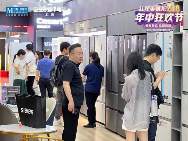 大促期间,上海红星美凯龙举办“绿色智能节活动”,线上通过视频号、抖音等直播平台,拓展家装厨卫消费;线下联动20个行业品牌、超100家线下门店,进入小区全面推广绿色智能家居消费。截至6月16日,上海电器整体销售同比增长60%,绿色补贴销售占比55%。电器品牌中,西门子、方太和博世的销售额取得喜人成绩,平均增长60%,而厨房家电、系统家电和大家电产品销售份额超80%。其中上海全球家居1号店和金桥商场销售增长明显,呈现85%和68%同比增长。