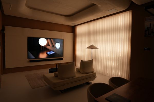 在易来联合Control4打造的全屋智能场景体验区,沉浸式空间人气持续攀升,成为展会“必打卡”区域。随着场景切换,“回家模式”即刻启动,灯光缓缓亮起,温柔驱散归家疲惫;切换“观影模式”后,灯光瞬间调至低亮度状态,智能窗帘同步闭合,打造专属私人影院的沉浸氛围。