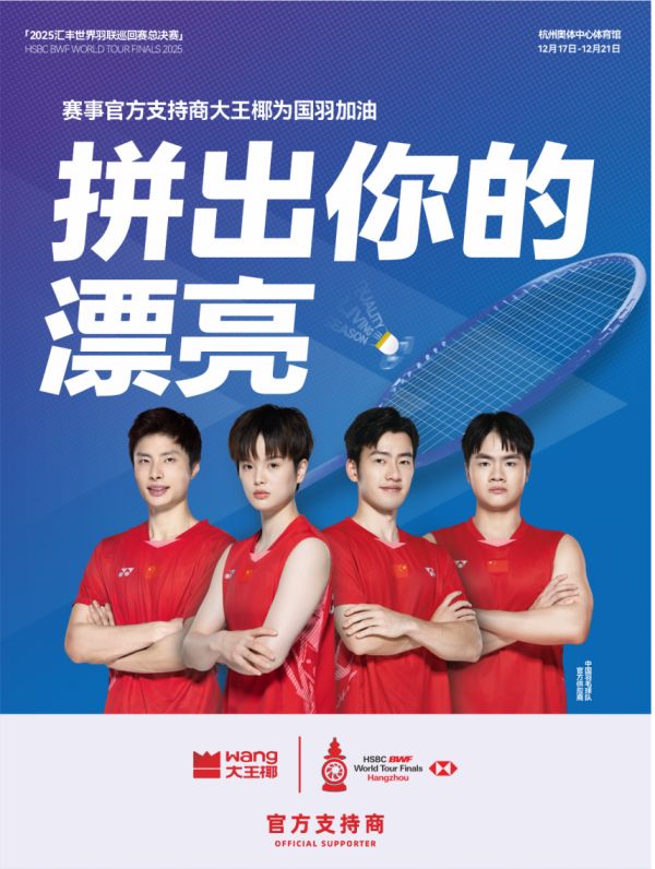 此次,大王椰以「2025汇丰世界羽联世界巡回赛总决赛官方支持商」及「中国羽毛球队官方供应商」的双重身份,深度参与赛事,其核心传播主题“拼出你的漂亮”,精准地将竞技体育的热血赛场与家居生活的美学空间这两个看似遥远的领域,巧妙地串联在了一起。