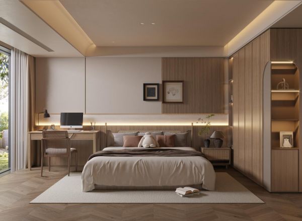 品质之“拼”。旗舰系列板材高于国标的HENF级环保等级,专注守护家人安全;采用被誉为“高端定制家居饰材模具天花板”的德国HUECK钢板,通过19丝级高精度镌刻工艺,实现对天然肌理的1:1高清复刻,确保了每一块板材的纹理都非简单的视觉模仿,而是具备了与真实木材无二的细腻触感。