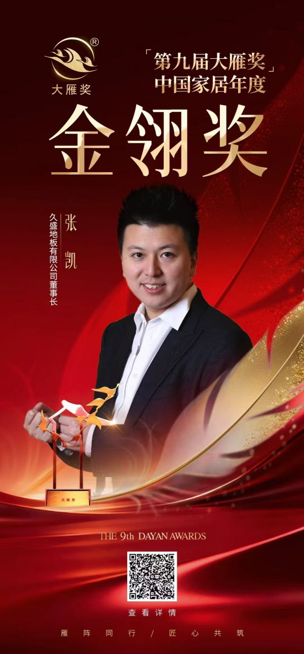 获得此项殊荣,意味着张凯先生的思想、实践与领导力获得了产业最高维度的广泛认可。这不仅是对其个人成就的加冕,也折射出其所在企业久盛地板的卓越实力。展望未来,我们期待张凯先生能继续以其“金翎”之姿,发挥更大的引领作用,以远见卓识和实际行动,激励更多同行者,共同驱动中国家居产业迈向更加辽阔的价值星空。