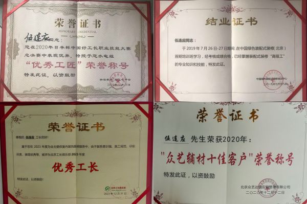 凭借这份责任与担当,伍连应收获了诸多行业认可:2019年获评“优秀工长”,2023年荣获“中国实力好工长”称号,这些荣誉成为他诚信从业的有力注脚。